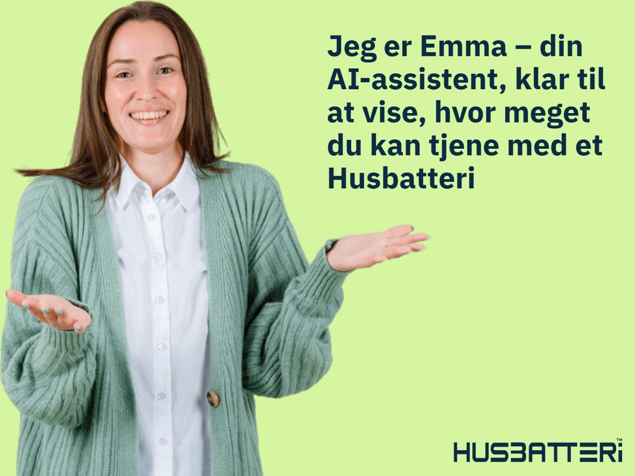 Emma – din AI-assistent – hjælper dig med at beregne din forventede indtjening og besparelse med et Husbatteri. Hun stiller fire enkle spørgsmål:
